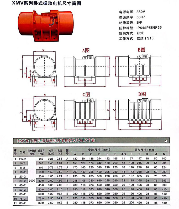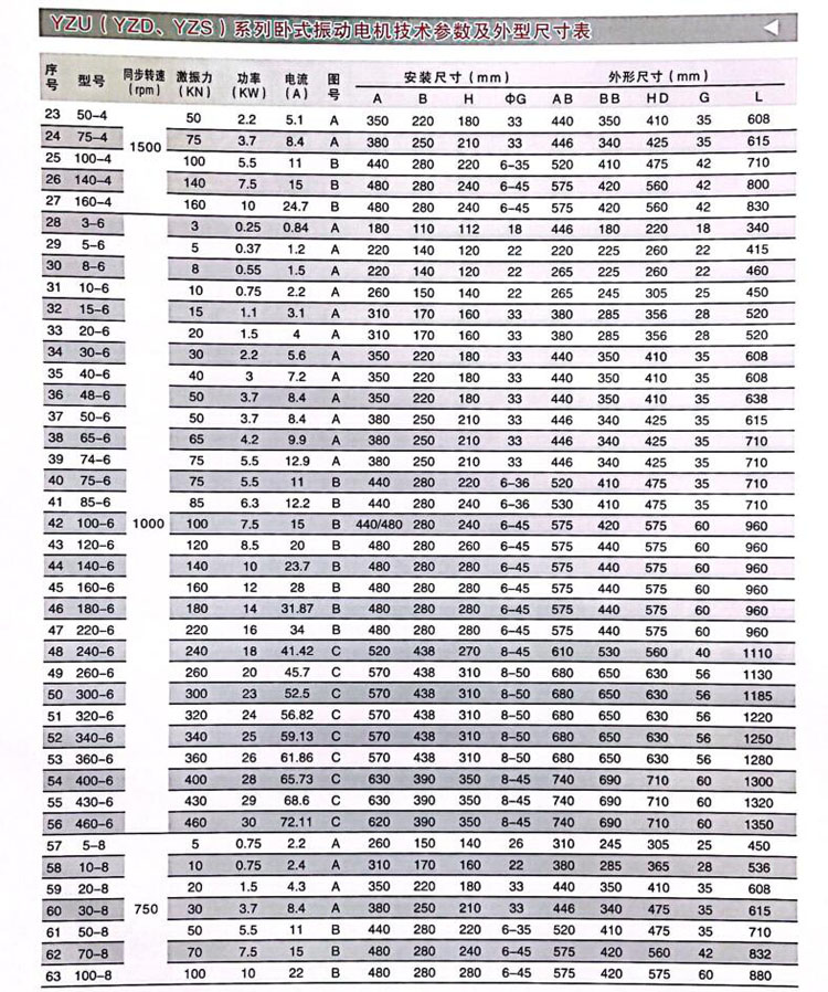 3、據適用設備選購,振動篩、給料機和振實臺等設備,計算好電機振次和雙振幅選擇二級、四級、六級電機。
